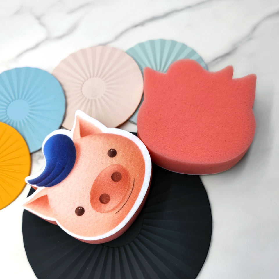 ชุดฟองน้ำขัดผิวรูปหมูขนาดเล็กสำหรับใช้ในครัวแผ่นฟองน้ำสำหรับทำความสะอาดในห้องครัว