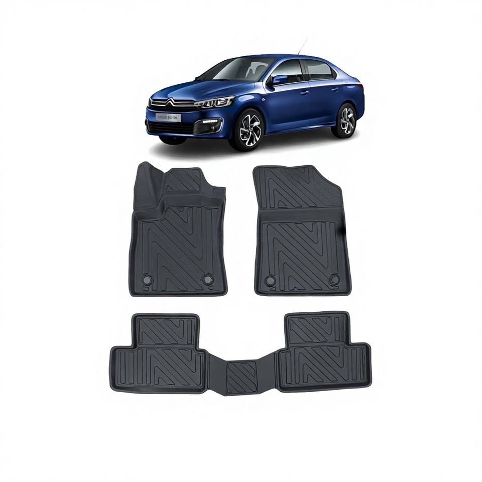 พรมปูพื้นรถยนต์ Pikas 4D แบบสั่งตัดพิเศษสำหรับ Citroen C-Elysee ปี 2012+ กันน้ำ ขอบสูง แบบสระน้ำ สีดำ ชุดปูพื้น