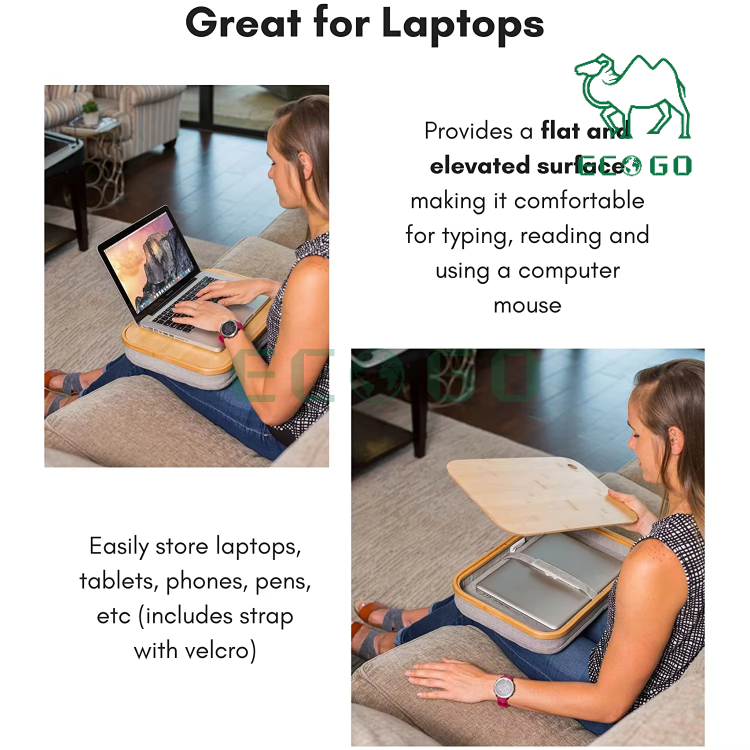 Pillow Cushioned Laptop Accessories Book Stand Bamboo Lap Desk With Laptop Storage Compartment