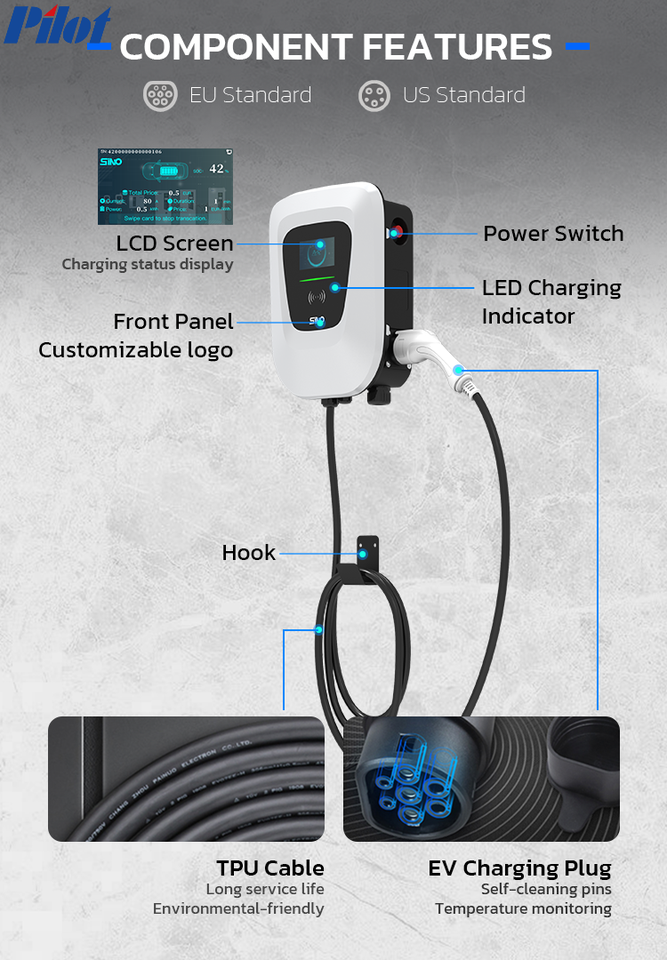 เครื่องชาร์จรถยนต์ไฟฟ้าแบบติดผนัง Pilot Sino ราคาโรงงาน รุ่นที่ 1 พร้อมหน้าจอ 16A 230v สถานีชาร์จรถยนต์ไฟฟ้าแบบพกพา เครื่องชาร์จรถยนต์ไฟฟ้า Byd