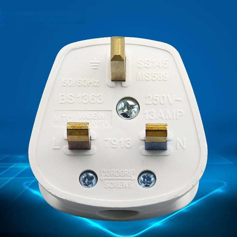 Pin Electrical PlugRewireable Plug with Fuse Male DetachableRemovable Power Wiring Plug
