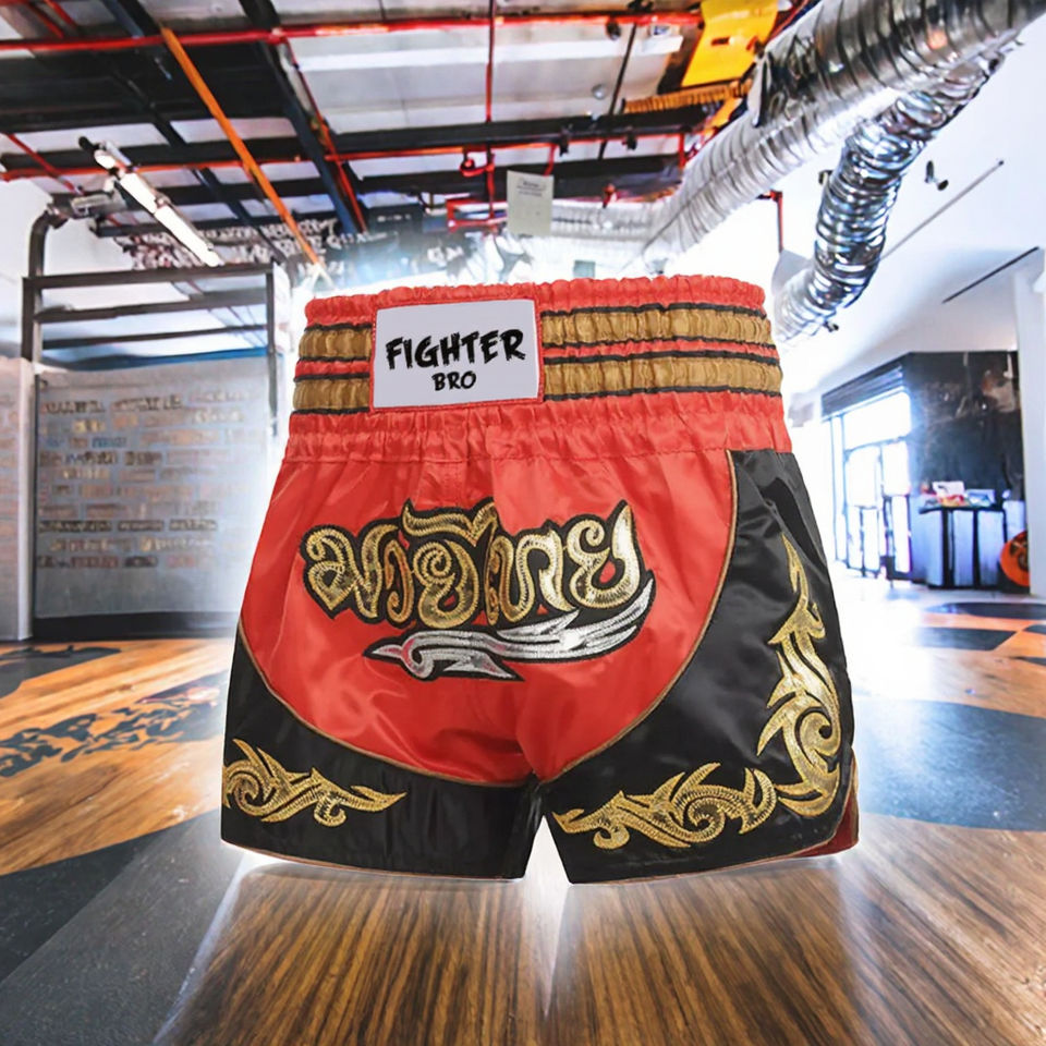 Pinbo กางเกงขาสั้นมวยไทยแบบสั่งตัด160ก. ผ้าโพลีเอสเตอร์สีดำสำหรับผู้ใหญ่ขายส่ง