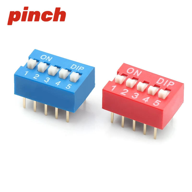 สวิตช์ DIP แบบกด 5 ตำแหน่ง ระยะห่างขา 2.54 มม. แบบ Through Hole SPST ตัวเลือกเปิด-ปิด สำหรับอุปกรณ์อิเล็กทรอนิกส์