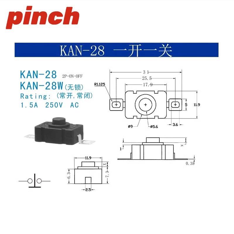 สวิตช์แบบกด KAN-28 18X12มม. 1NO 1.5A 12V ขั้วสกรูหัวกลมพลาสติก