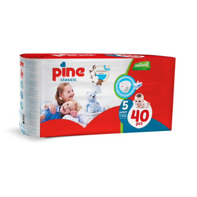 ผ้าอ้อมเด็กสำเร็จรูปไพน์ คลาสสิค จูเนียร์ ไซส์ 5 ซึมซับดีเยี่ยม ระบายอากาศได้ดี ป้องกันการรั่วซึม ผลิตภัณฑ์ดูแลเด็กคุณภาพพรีเมียม