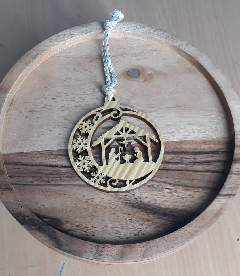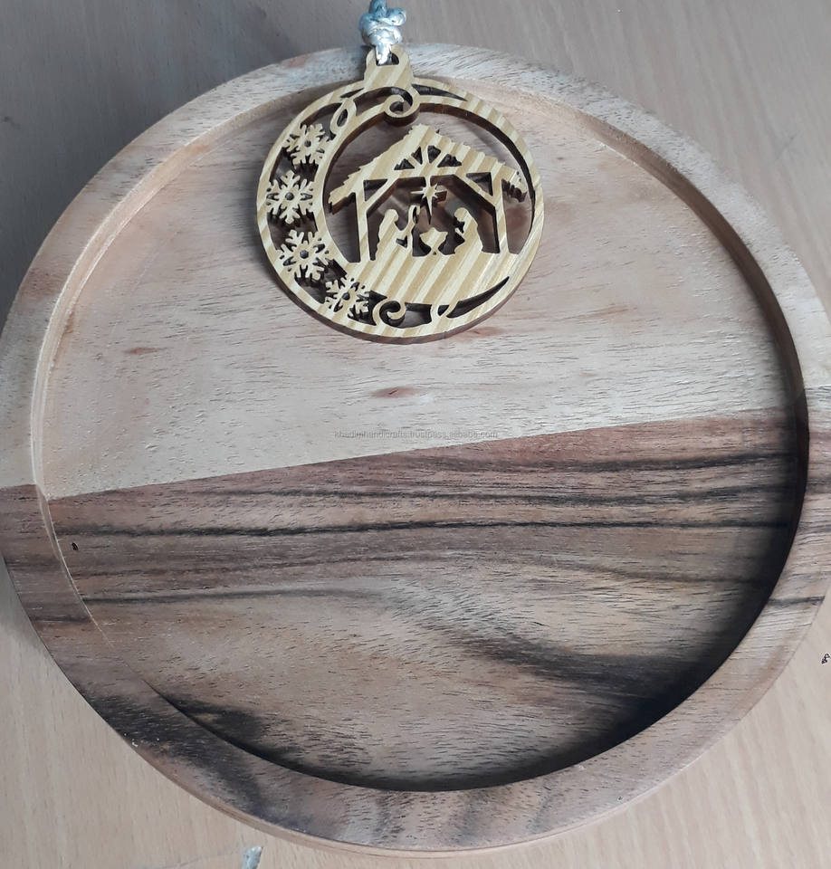 ไม้สนไม้ตัดด้วยเลเซอร์สำหรับแขวนต้นคริสต์มาสดีไซน์และรูปร่างใหม่ที่ไม่ซ้ำใครเหมาะสำหรับการตกแต่งวันหยุดและของขวัญ