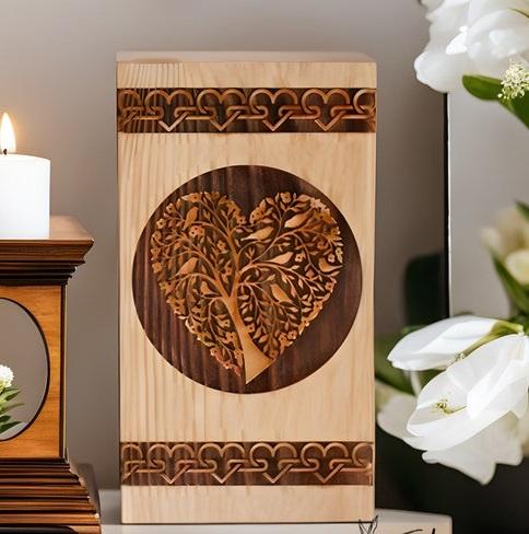 โกศไม้สนสําหรับเถ้ามนุษย์ กล่องไม้ต้นไม้แห่งชีวิต การเผาศพส่วนบุคคลสําหรับเถ้า ทําด้วยมือ กล่องขี้โข่งไม้ขนาดใหญ่ |