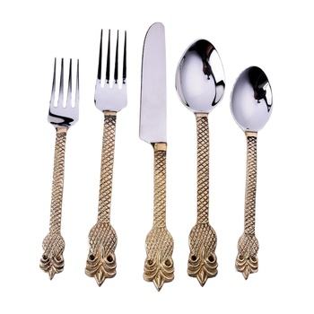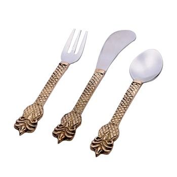 ชุดช้อนส้อมโลหะมีมือจับดีไซน์สับปะรดเครื่องใช้บนโต๊ะอาหารหรูหราและมีสไตล์เหมาะสำหรับโต๊ะอาหารในงานกิจกรรมพิเศษ