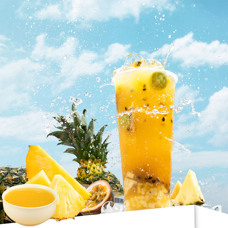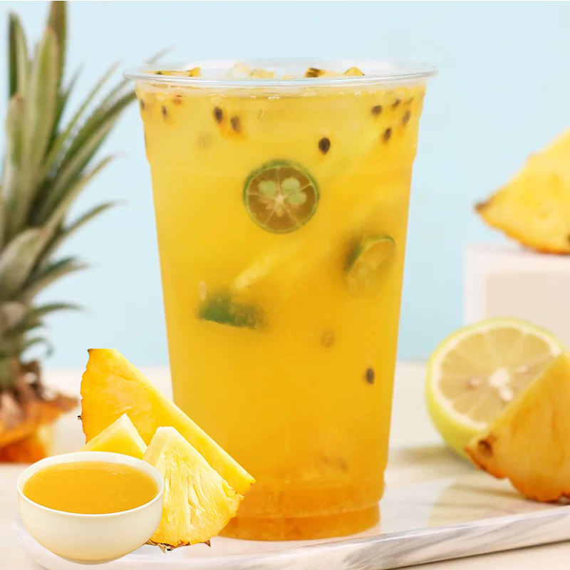 น้ำเชื่อมเข้มข้นรสสับปะรด ได้รับการรับรองฮาลาล ขายส่ง น้ำผลไม้เข้มข้นในขวด สำหรับชานมไข่มุก