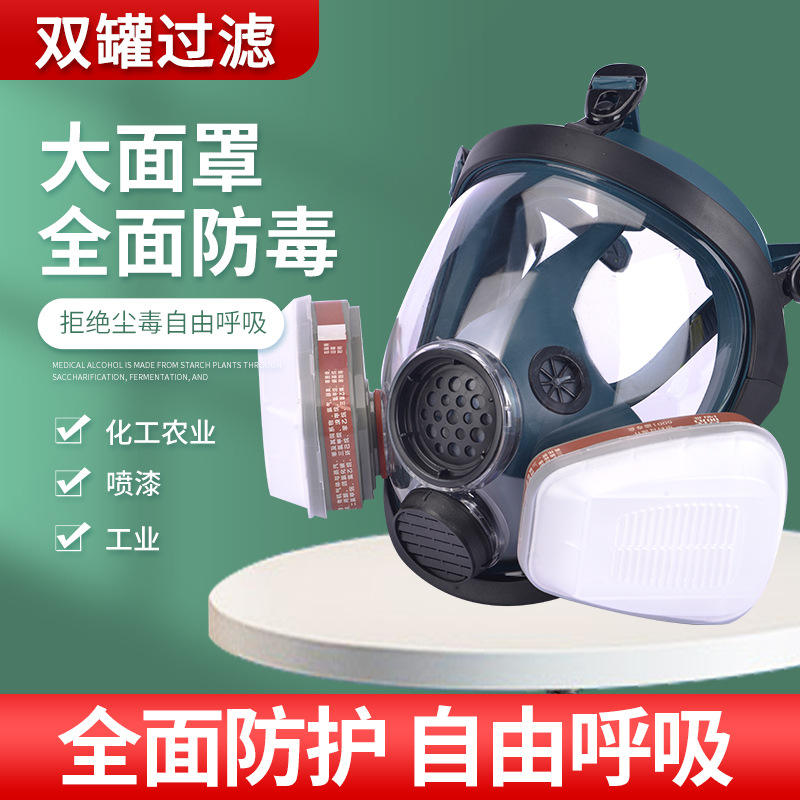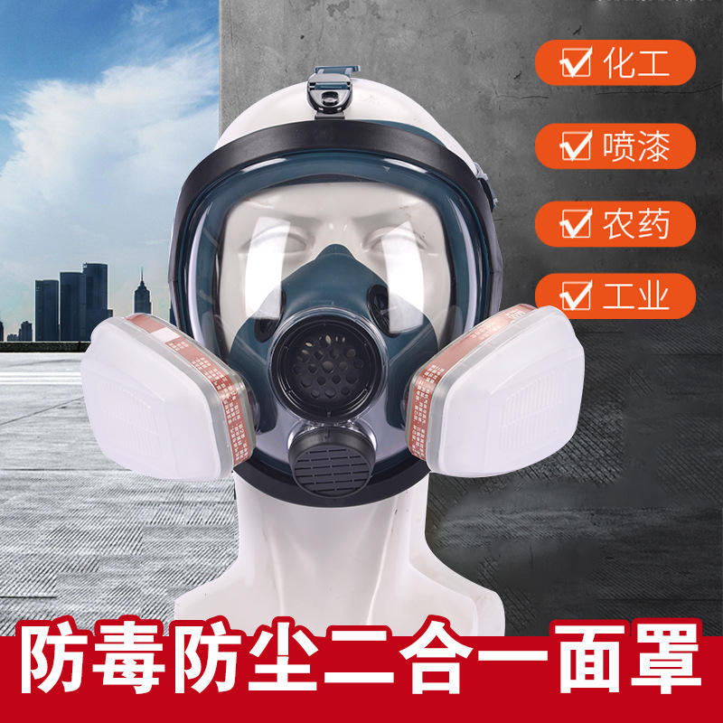 หน้ากากป้องกันสารเคมีแบบเต็มหน้า Pinjie ซิลิโคนนำกลับมาใช้ใหม่ได้ พร้อมไส้กรองไอระเหยอินทรีย์ สำหรับงานพ่นสีในอุตสาหกรรม