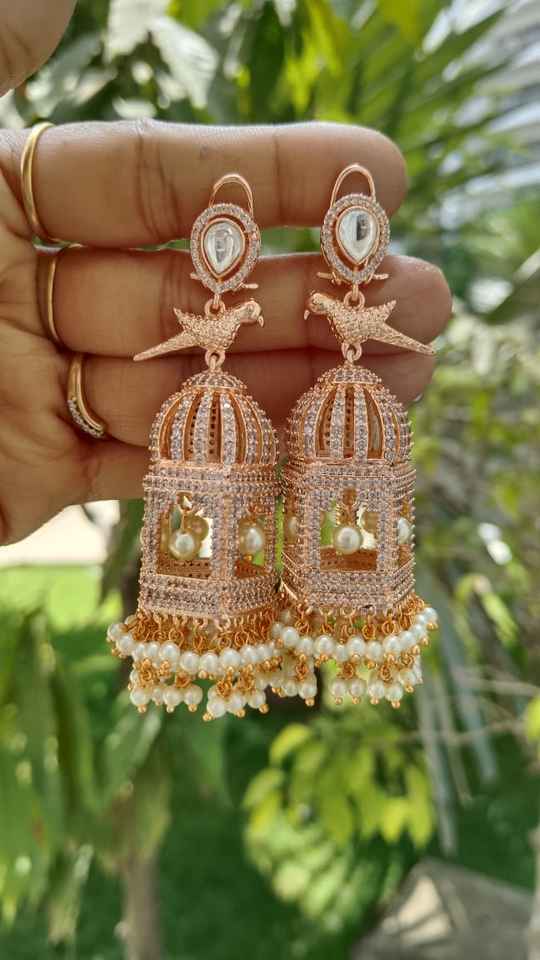 Pinjra Jhumka Earrings For Women In Rose gold & Gold Plating Traditional Indian Cage-Style Dangling Earrings Ethnic Jewelry