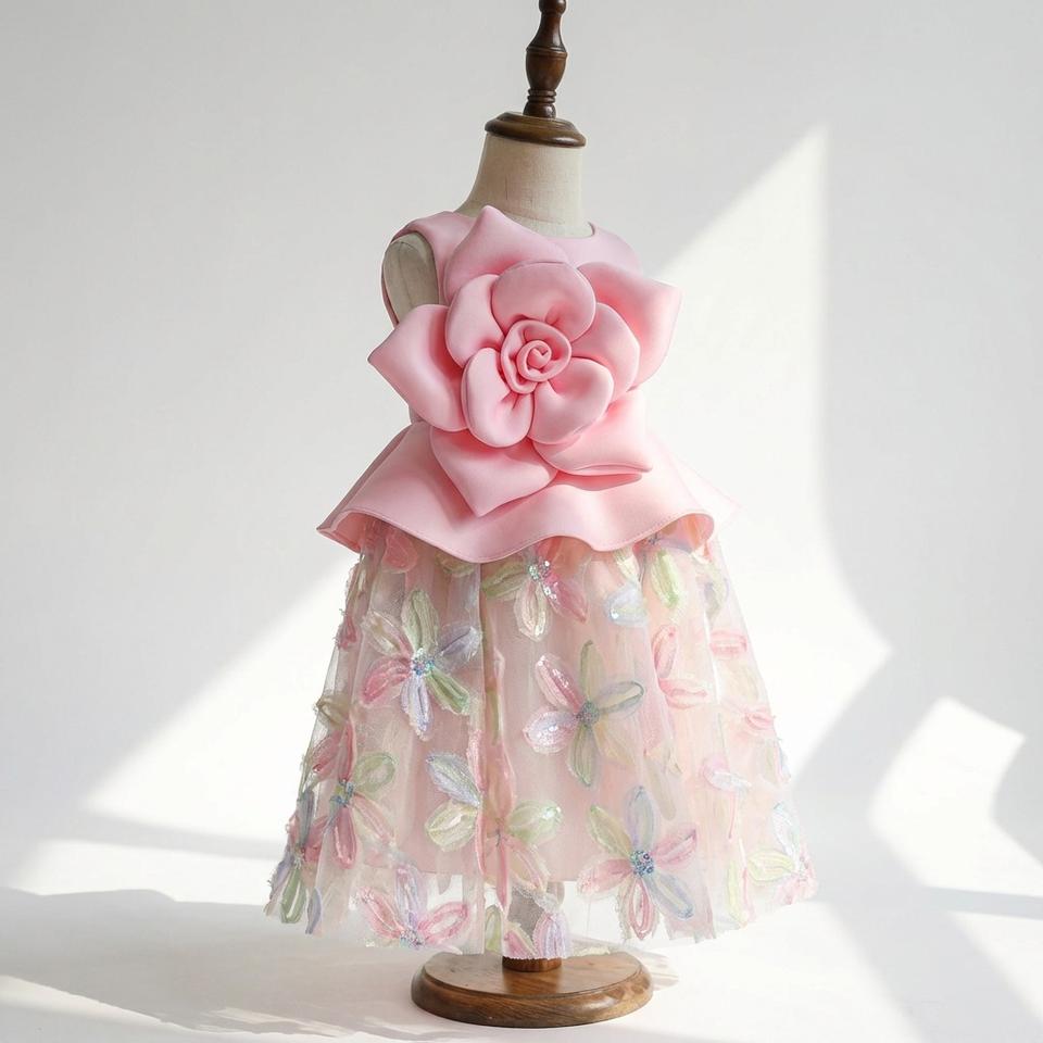 ชุดเดรสงานปาร์ตี้เด็กผู้หญิงลายดอกกุหลาบ 3 มิติ สีชมพู ดีไซน์หรูหรา ชุดวันเกิด ผ้าตาข่ายเนื้อนุ่ม ราคาไม่แพง ออสเตรเลีย