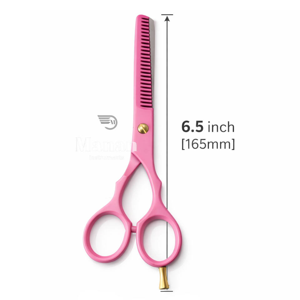 กรรไกรซอยผมสีชมพู ใบมีดคมทำจากเหล็กสแตนเลส 4Cr13 สำหรับมือขวา ด้ามจับขนาดกลาง สำหรับร้านเสริมสวย