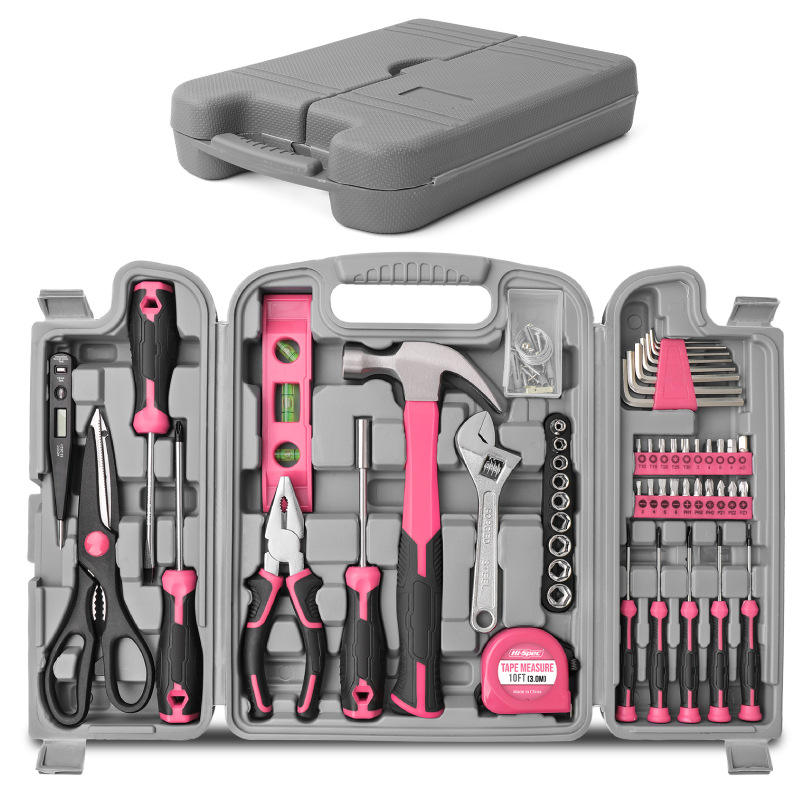 ชุดเครื่องมือช่างสำหรับใช้ในบ้าน 54 ชิ้น สีชมพู พร้อมประแจ คีมเหล็กโครเมี่ยมวาเนเดียม ชุดซ่อมแซมบ้านสำหรับงาน DIY