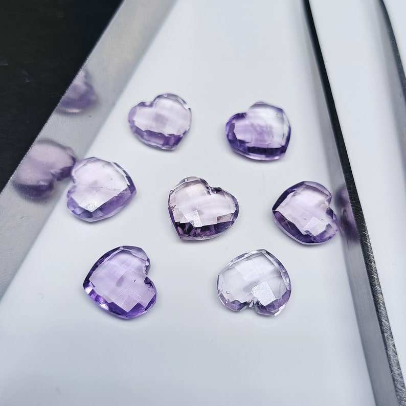 พลอยอเมทิสต์สีชมพูทรงหัวใจเจียระไน 8 มม.