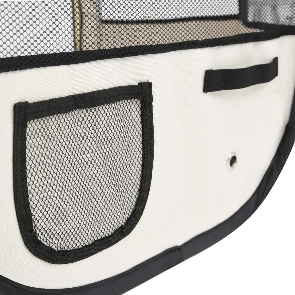 คอกกั้นสุนัขสีชมพูและครีม ทำจากโพลีเอสเตอร์ ขนาด 49.2 นิ้ว x 49.2 นิ้ว x 24.0 นิ้ว แบบพับได้ สำหรับใช้ภายในอาคาร