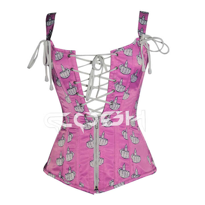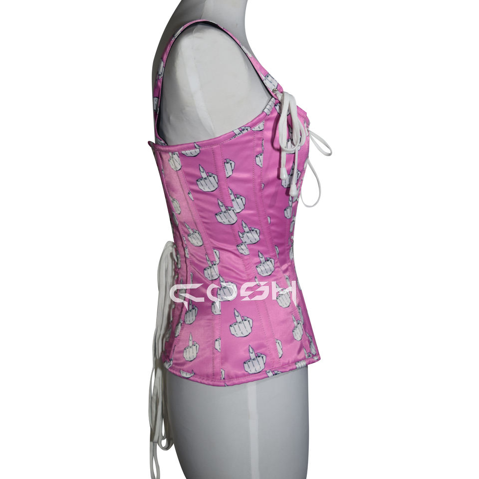 เสื้อคอร์เซ็ทพิมพ์ลายสีชมพูแบบผูกคอ