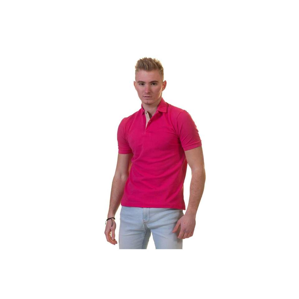 Pink Beige Garnish Plain Polo Collar Short Sleeve T-Shirt