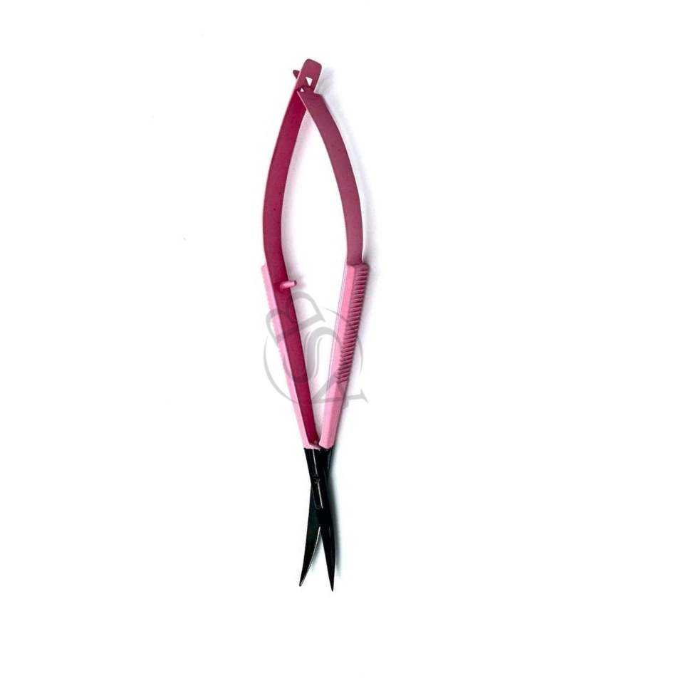 กรรไกรสปริงใบมีดโค้งตรงสองด้าน สแตนเลสสีชมพู สำหรับตัดขนตาและคิ้ว แบบรัสเซีย สำหรับคนถนัดขวา