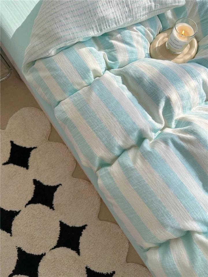 ชุดปลอกผ้านวมผ้าลินิน3ชิ้นสีชมพู/น้ำเงิน/เขียว/เหลืองอ่อนลายทาง/ขนาดควีนไซส์สำหรับโรงแรมบ้านโรงพยาบาล