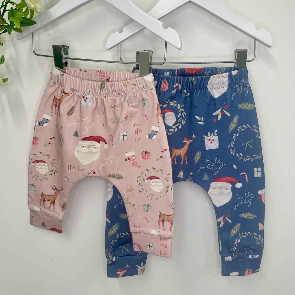 Holly Jolly Organic Baby Leggings Pink Blue Latest Children Trousers Elastic Waist Festive Baby Wear 2 Pcs Pants Cotton Spring