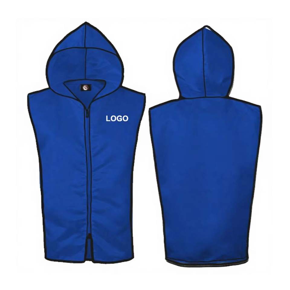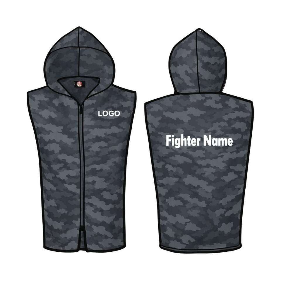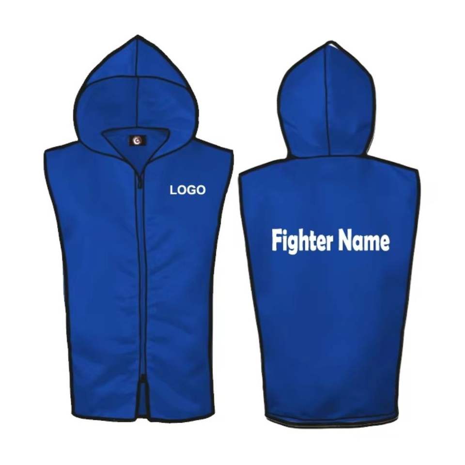 เสื้อกั๊กมีฮู้ดสีชมพูสำหรับนักมวย แบบไม่มีแขน สกรีนโลโก้ทีมตามสั่ง สำหรับใส่ในเวทีมืออาชีพ