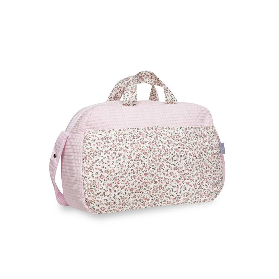 กระเป๋าใส่ผ้าอ้อมลายรังผึ้งและดอกไม้สีชมพู กระเป๋าเดินทางสำหรับเด็ก