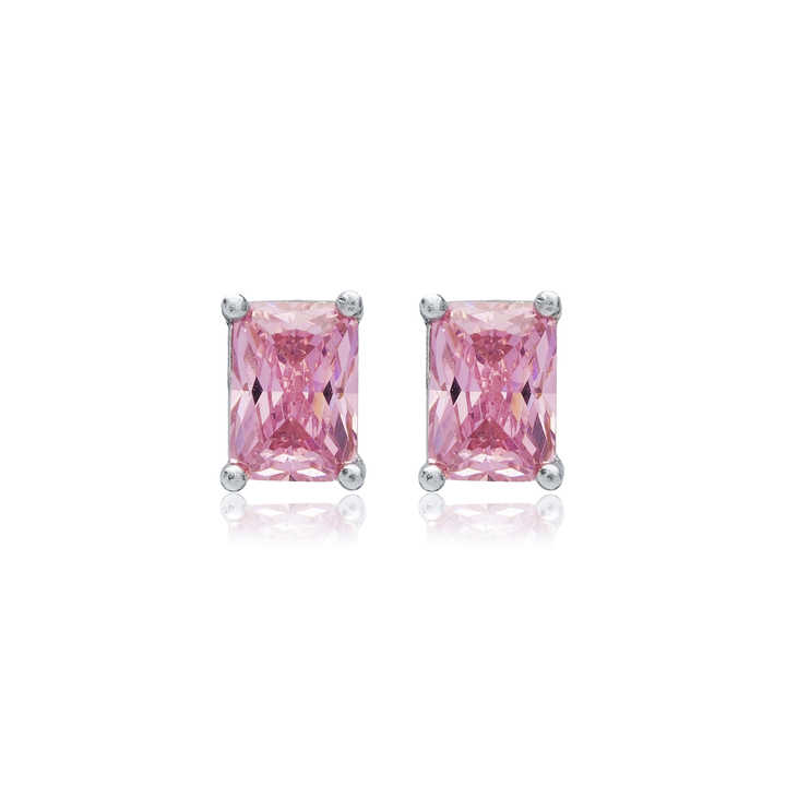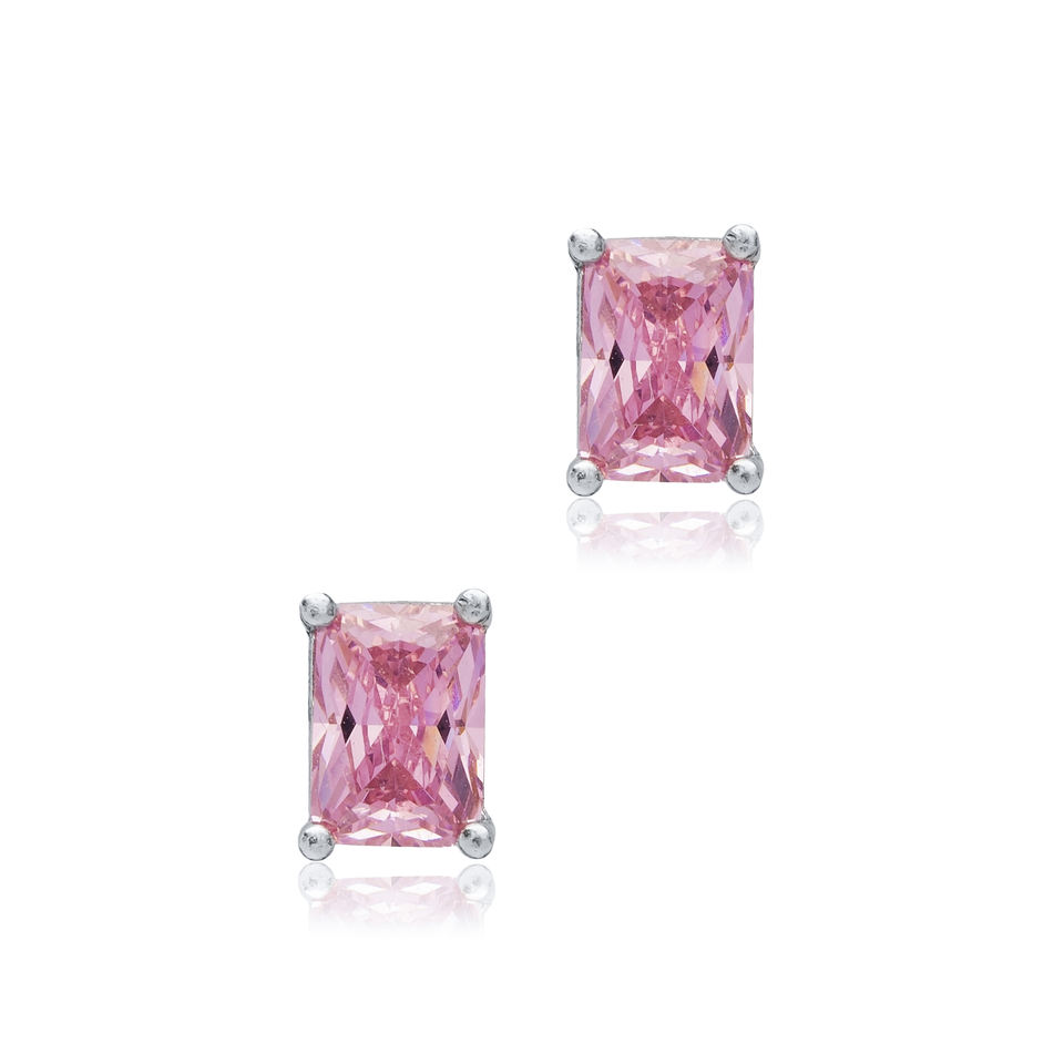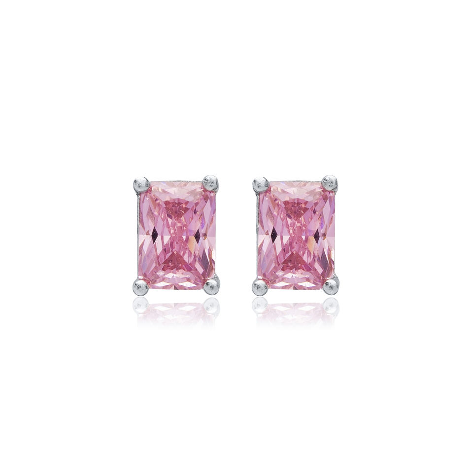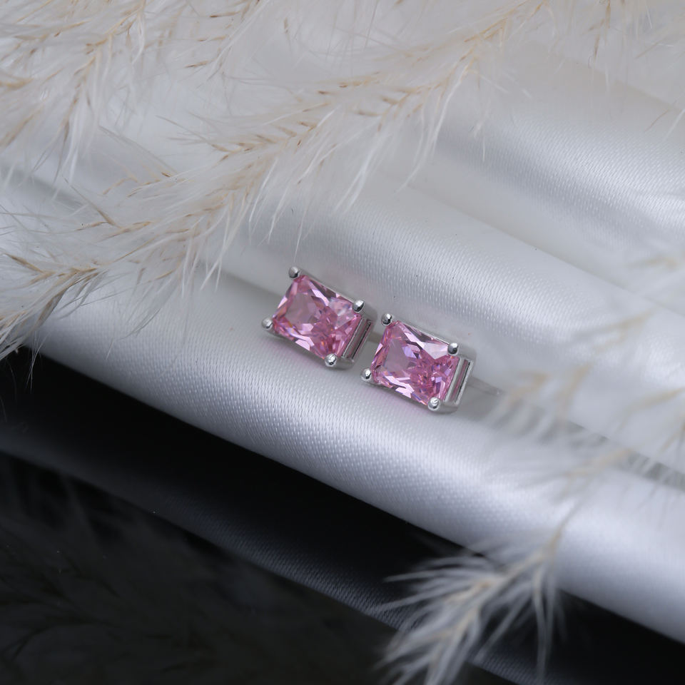 ต่างหูแบบกระดุมลาย Baguette หินคิวบิกสีชมพูทำด้วยมือทันสมัย925สเตอร์ลิงเครื่องประดับตุรกี