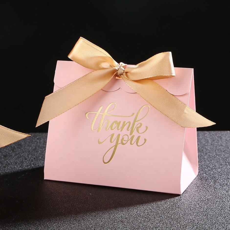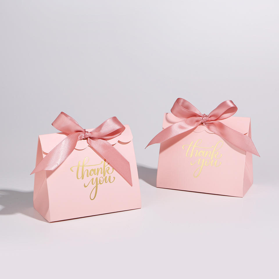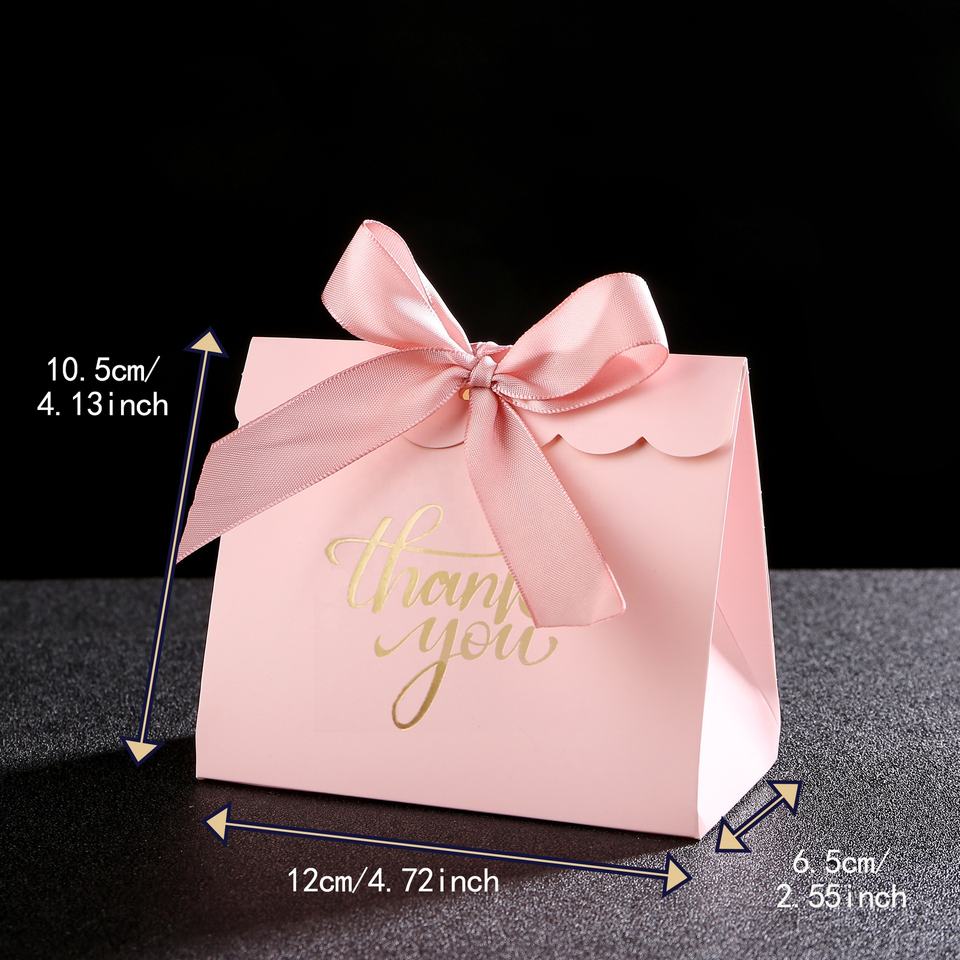 กล่องกระดาษแข็งสีชมพูบรรจุภัณฑ์ช็อคโกแลตพร้อมส่งขอบคุณสำหรับปาร์ตี้ตกแต่งกล่องแฟนซีสีชมพูสำหรับวันเกิด