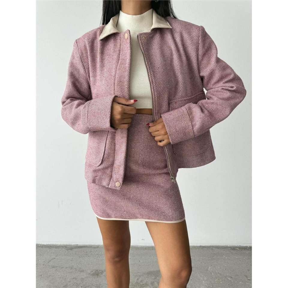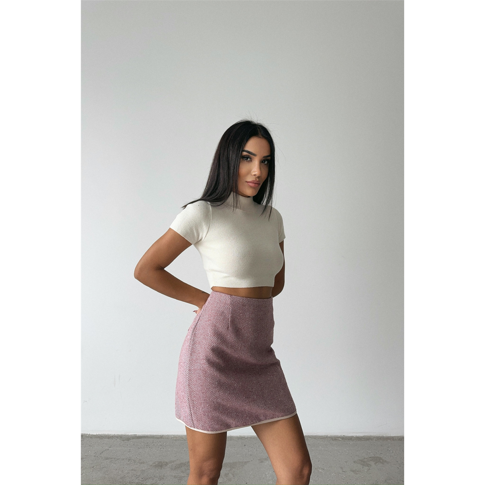 กระโปรงสั้นผ้าแคชเมียร์สีชมพูสำหรับผู้หญิง