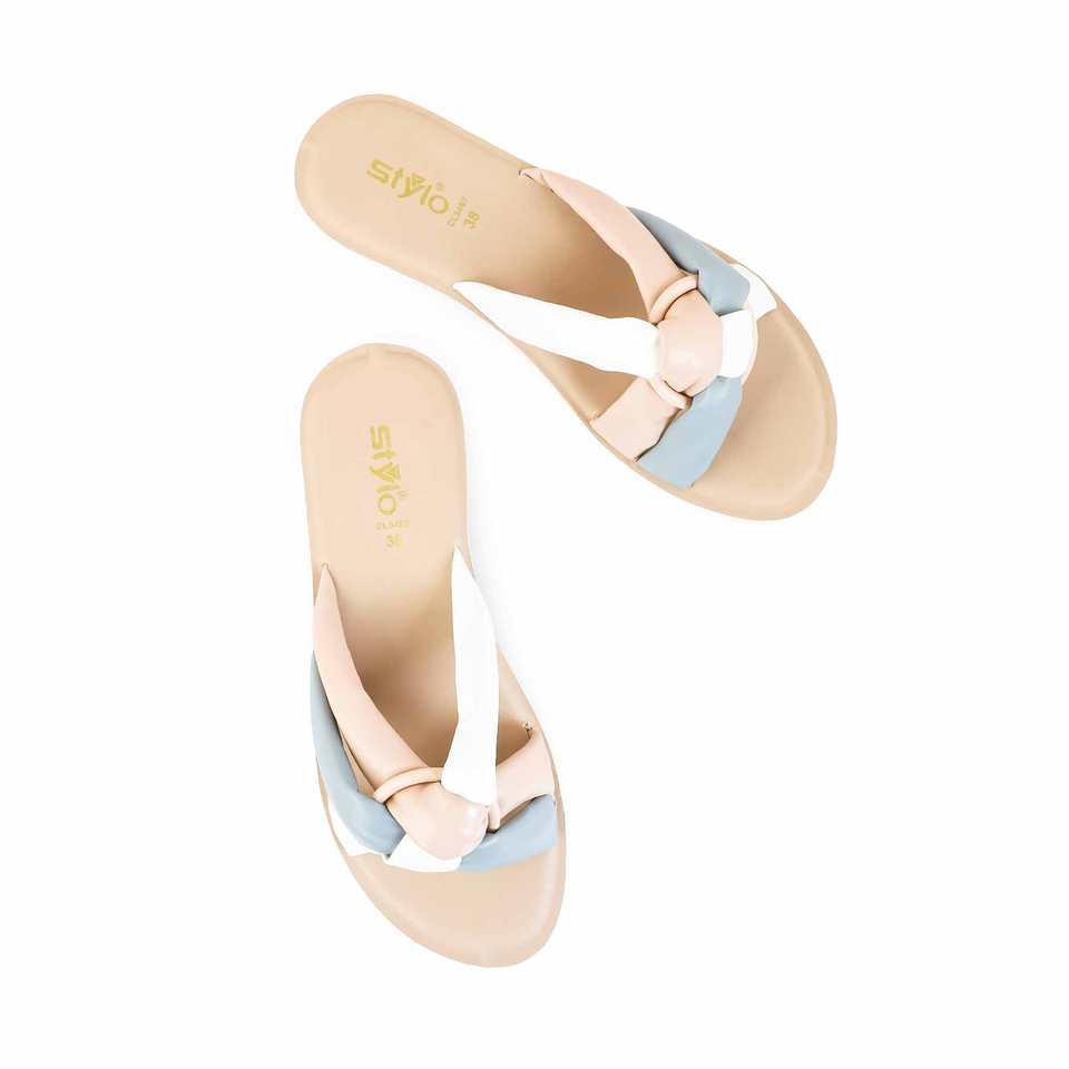 รองเท้าแตะสีชมพูลำลองส้นแบน CL5467นุ่ม