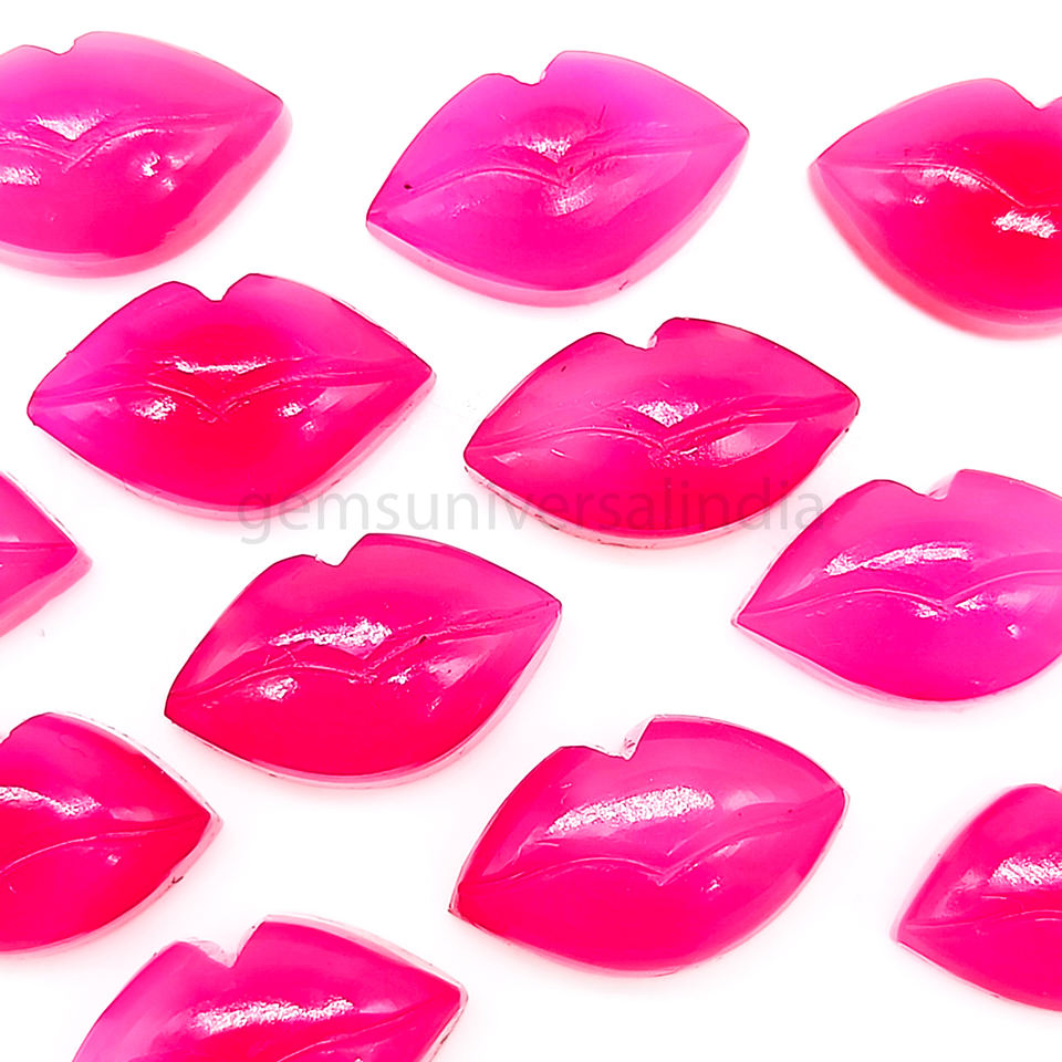 ลูกปัดหินสีชมพูคาลเซโดนีแกะสลักทรงริมฝีปาก สไตล์ฮิปฮอป ลูกปัดหินสีชมพูสำหรับทำเครื่องประดับ ลูกปัดแบบหลวม