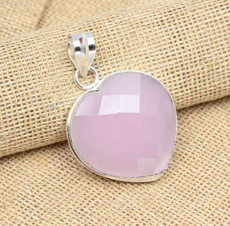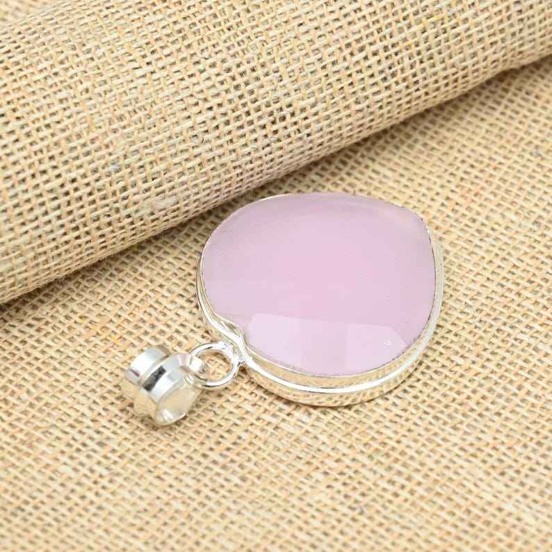 เครื่องประดับพลอยแคลเซโดนีสีชมพู เงินแท้ 925 จี้ทำมือ ดีไซน์ใหม่ล่าสุด ของขวัญสำหรับแฟนสาว