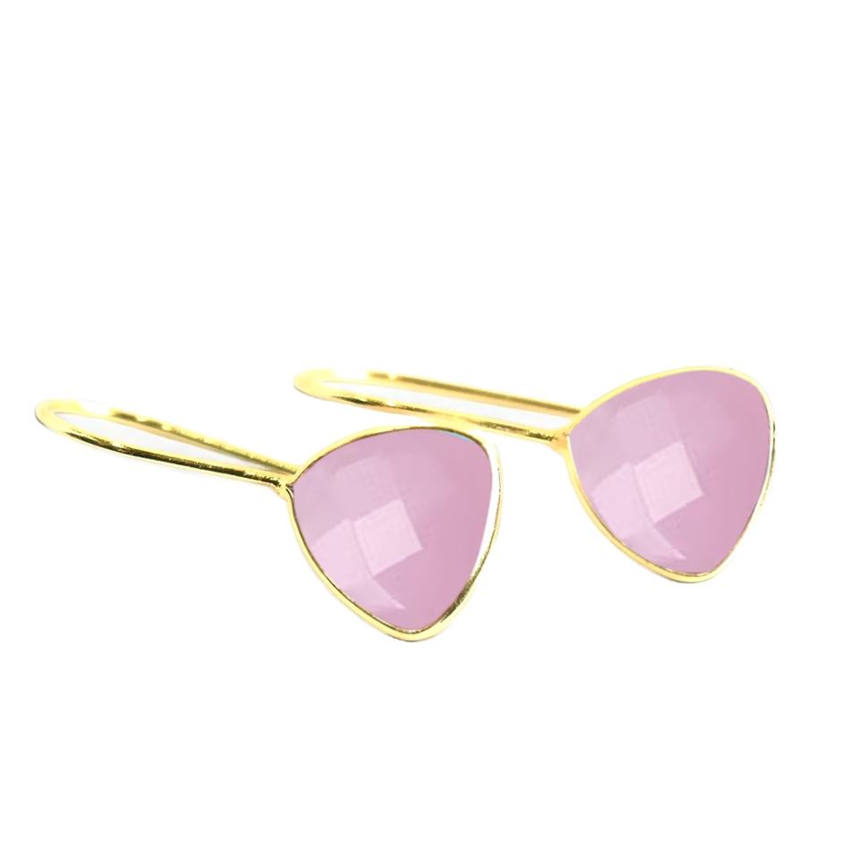 ต่างหูทรงสามเหลี่ยมพลอยสีชมพู - เงินแท้ 925 ชุบทอง - ต่างหูแบบห้อยประดับพลอยทรงกรอบ - เครื่องประดับสุดหรูสำหรับผู้หญิง