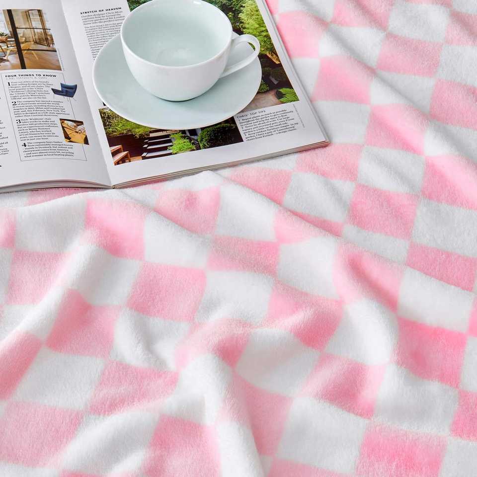 ผ้าห่มผ้าสักหลาดลายตารางสีชมพูนุ่มสบายเป็นพิเศษผ้าห่มโยนผ้าฟลีซนุ่มสบายสำหรับเตียงโซฟาการตั้งแคมป์