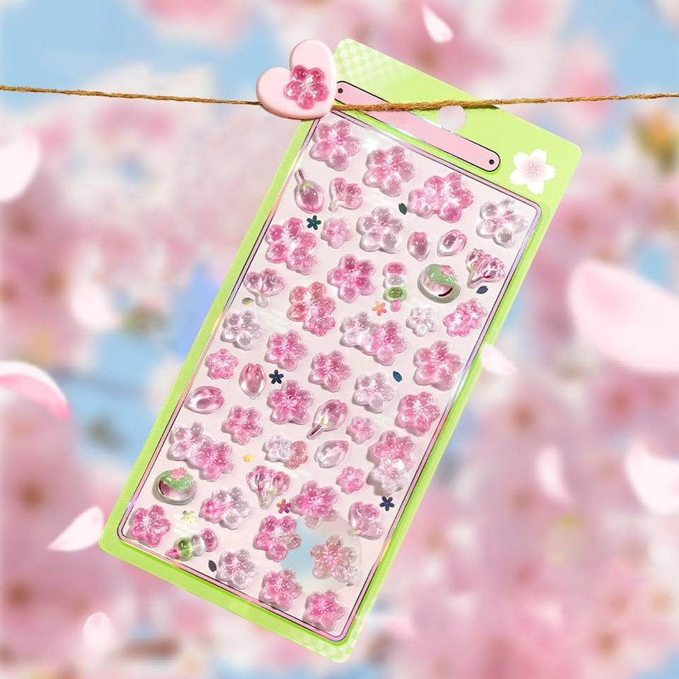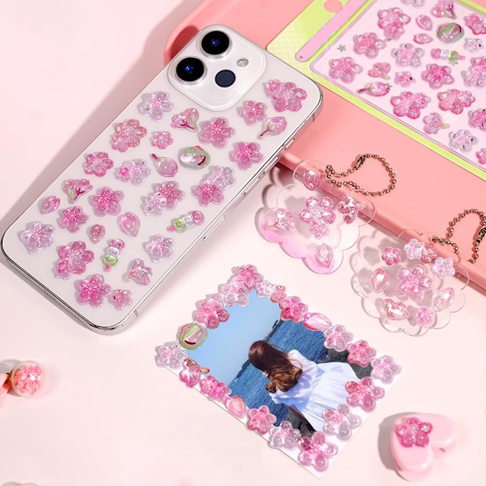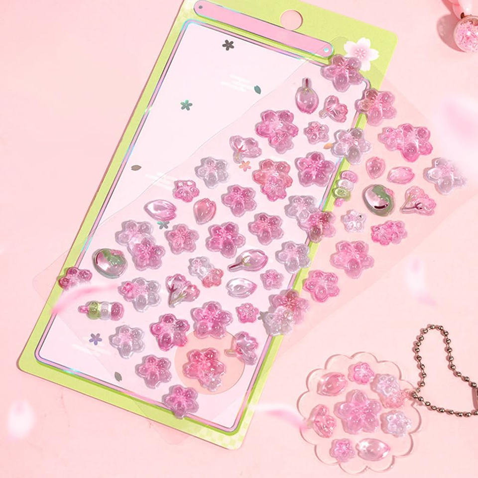 สติกเกอร์ 3 มิติ ลายดอกซากุระสีชมพู สไตล์การ์ตูนน่ารัก นูนลายดอกไม้ กันน้ำ สำหรับตกแต่งสมุดภาพ