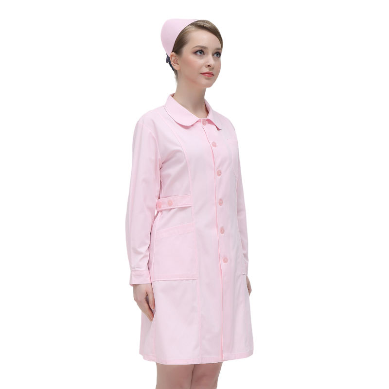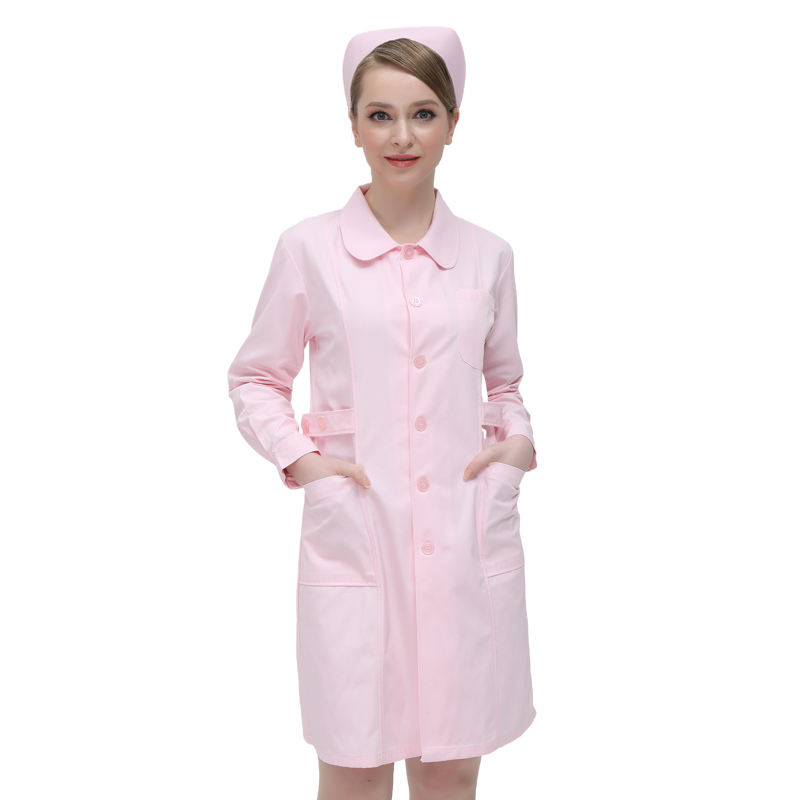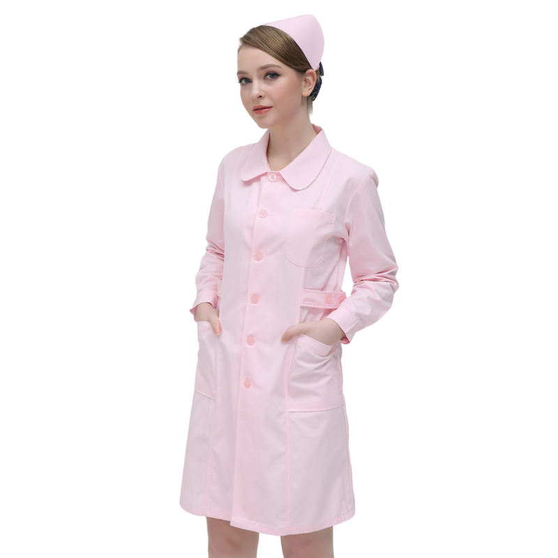 เสื้อโค้ทแขนยาวสีชมพูเครื่องแบบแพทย์เครื่องแบบห้องปฏิบัติการโรงพยาบาลร้านขายยาเสื้อโค้ทห้องปฏิบัติการสั่งทำ