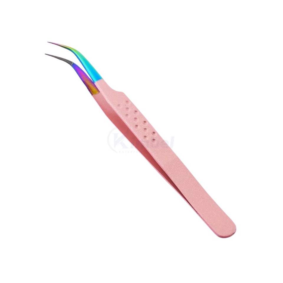 แหนบต่อขนตาเคลือบสีชมพู แหนบโค้งความแม่นยำสูง สำหรับร้านเสริมสวยมืออาชีพ อุปกรณ์ต่อขนตา