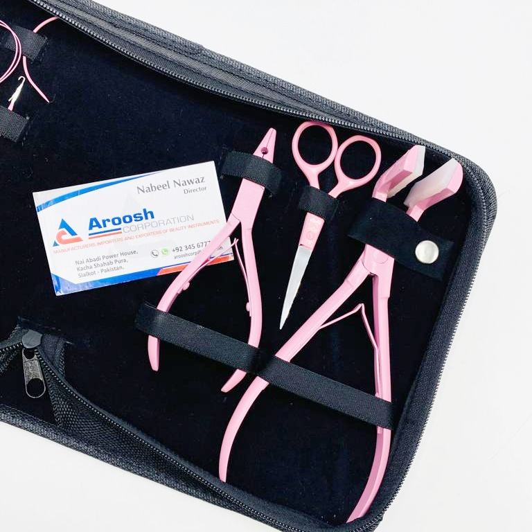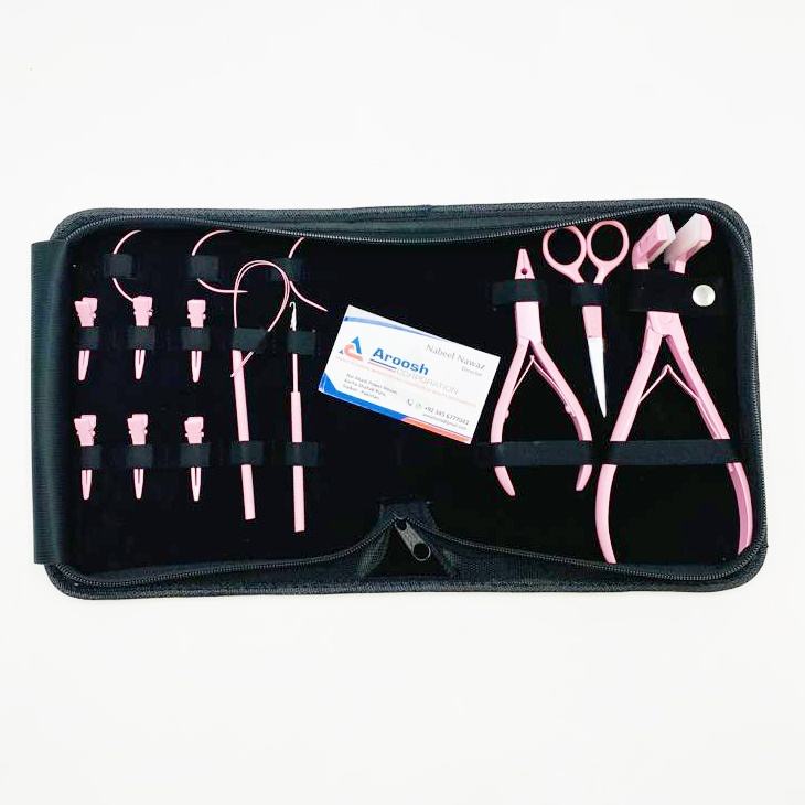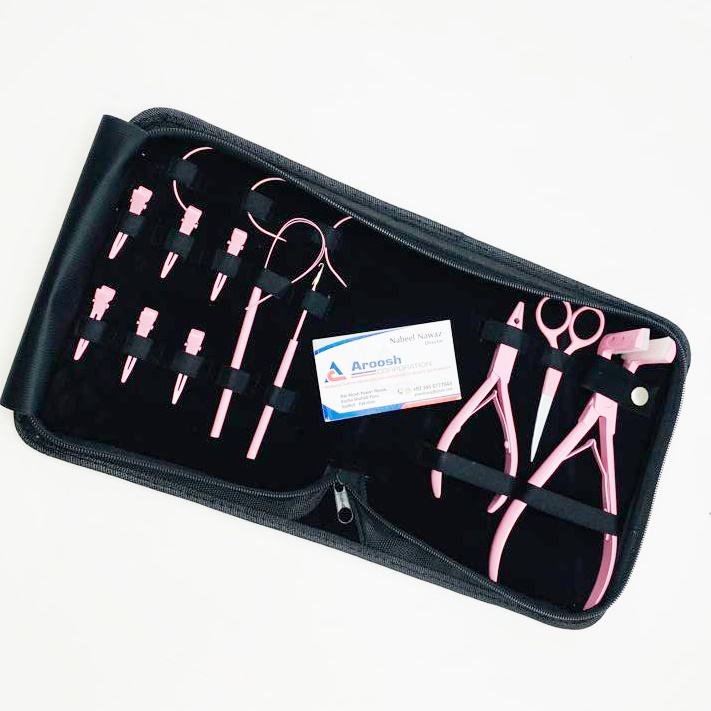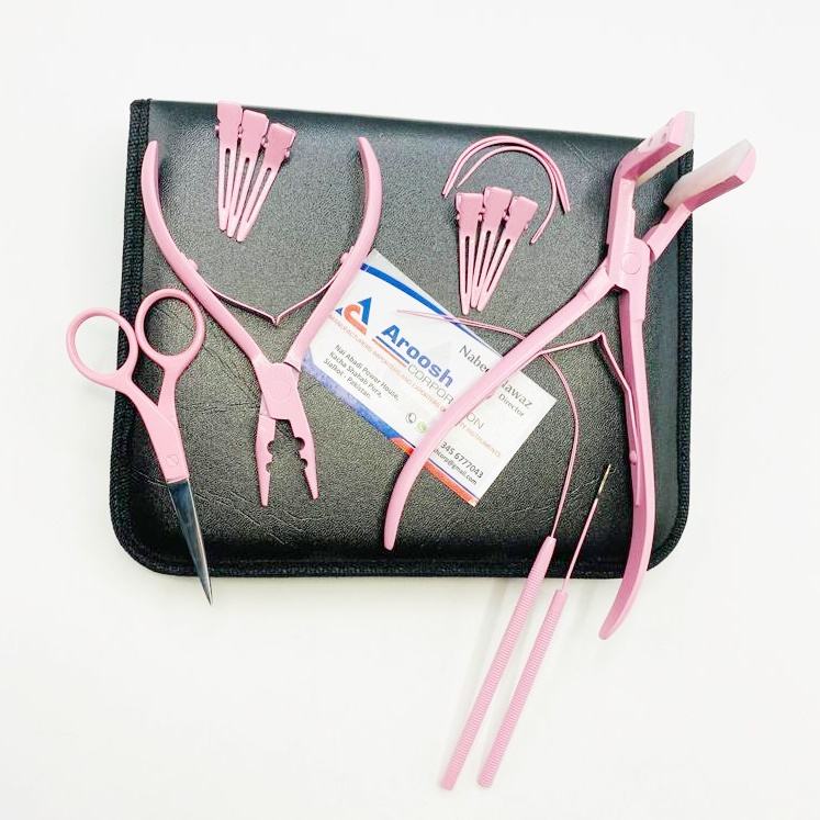 ชุดคีมหนีบผมปลายนาโนสแตนเลสย้อมสีผ้าคู่อุปกรณ์ดึงสายตรงเคลือบสีชมพู