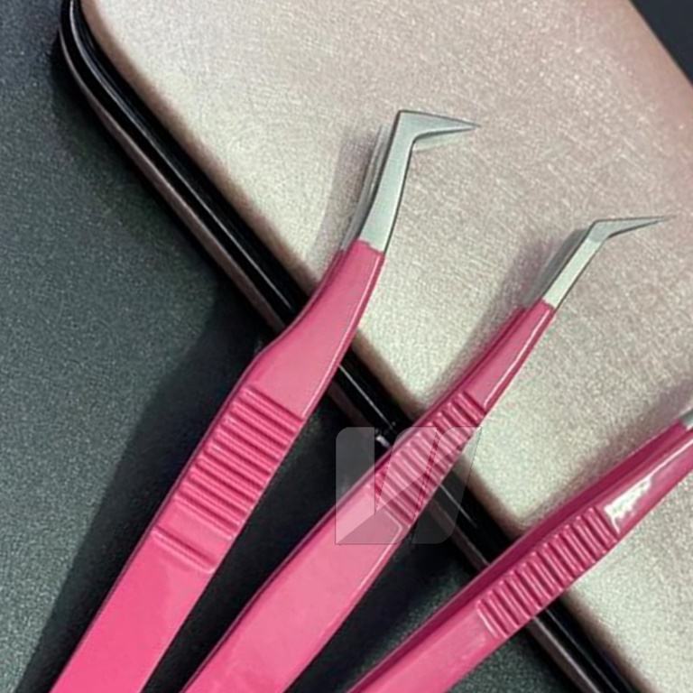 แหนบต่อขนตาสแตนเลสแบบญี่ปุ่นสีชมพูพร้อมสันจับปรับแต่งโลโก้ได้อย่างยั่งยืนและปลายแหลม