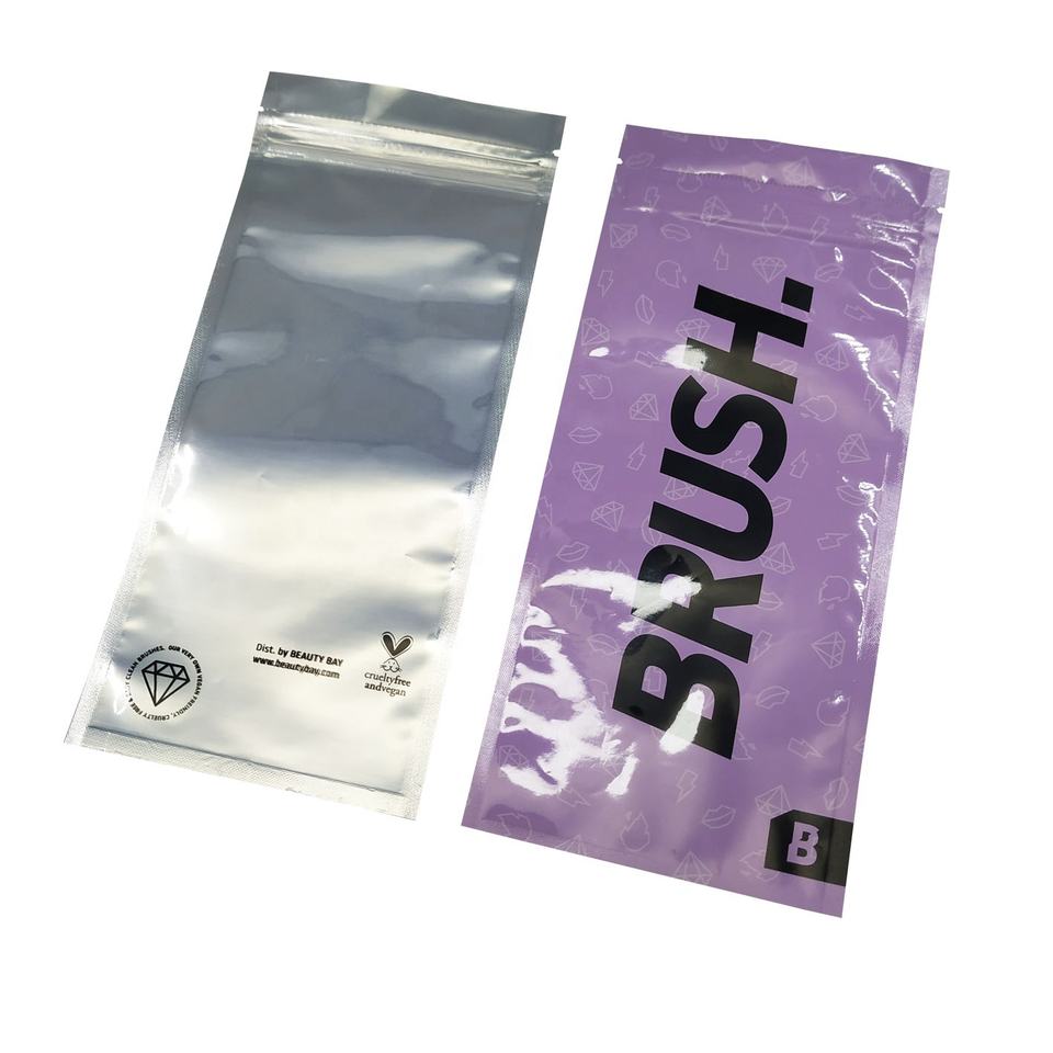 Pink Color Cosmetic Single Brush Packaging Mylar Flat 3 Side Seal Ziplock Bag