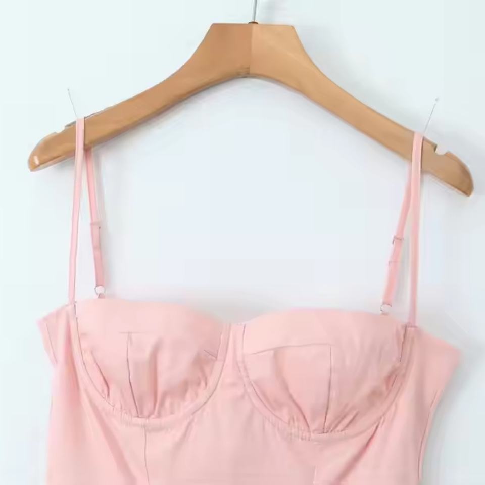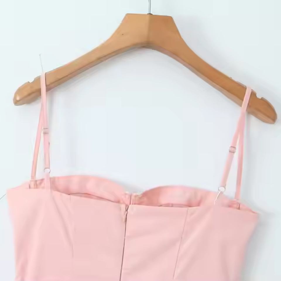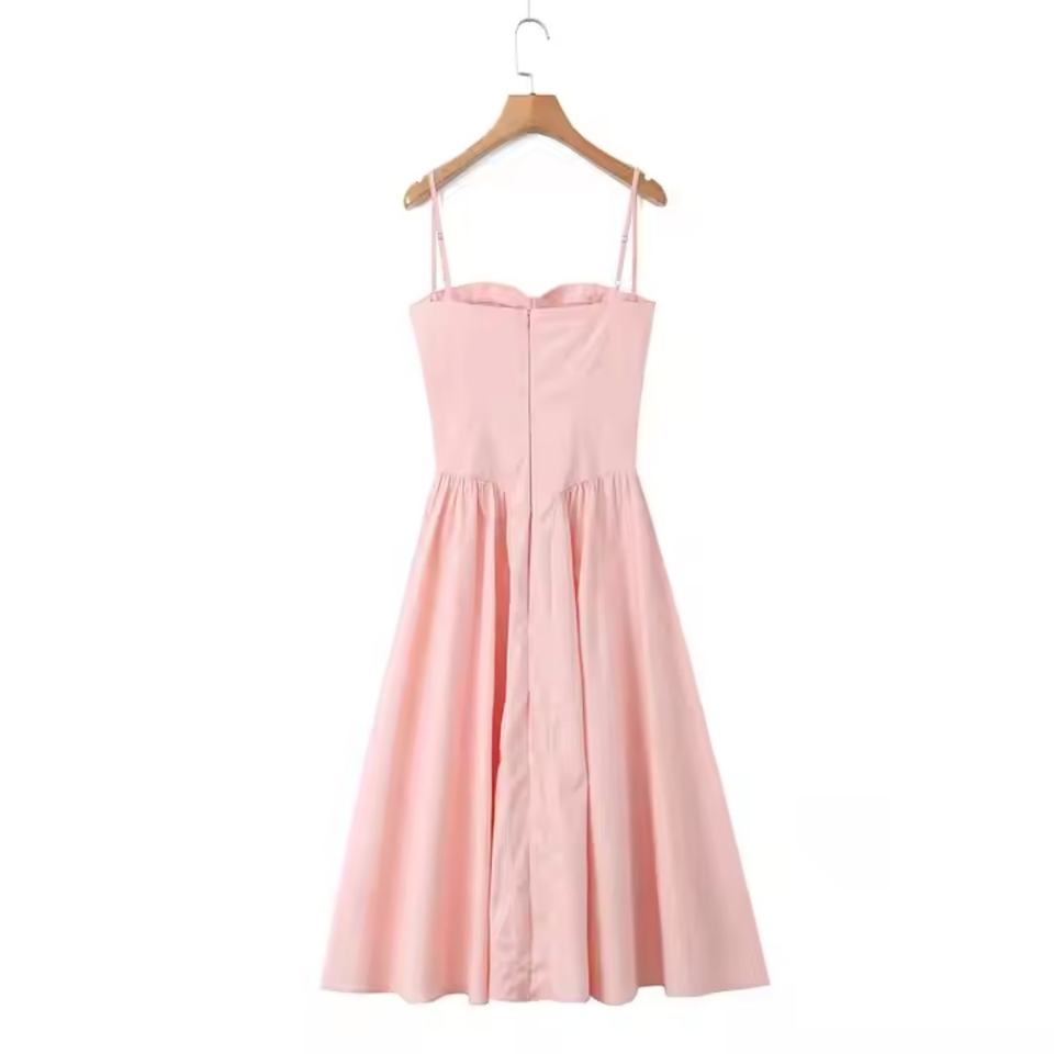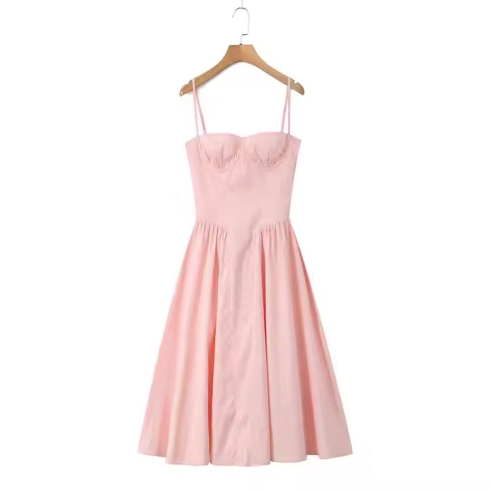 เดรสสีชมพูแขนกุด แฟชั่นฤดูใบไม้ผลิและฤดูร้อน สไตล์ลำลอง รับผลิตตามแบบ (OEM) คุณภาพสูง ชุดเดรสใหม่สำหรับผู้หญิง