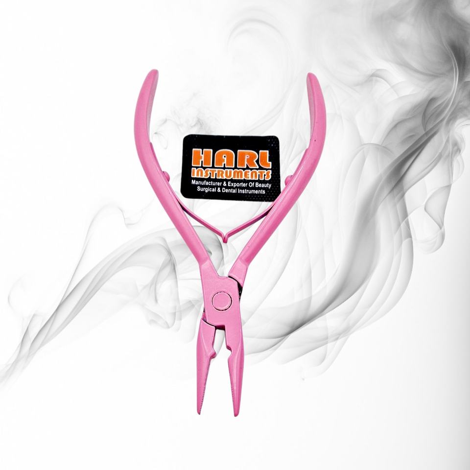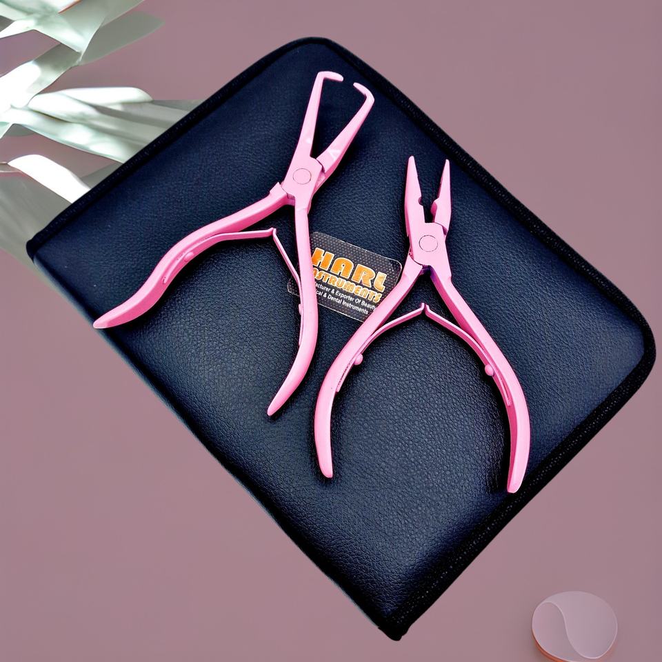 อุปกรณ์ต่อผมสีชมพู Colour ที่เปิดลูกปัดขนาดเล็กและคีมใกล้ตัวสำหรับต่อผมโลโก้ส่วนตัวร้านทำผม