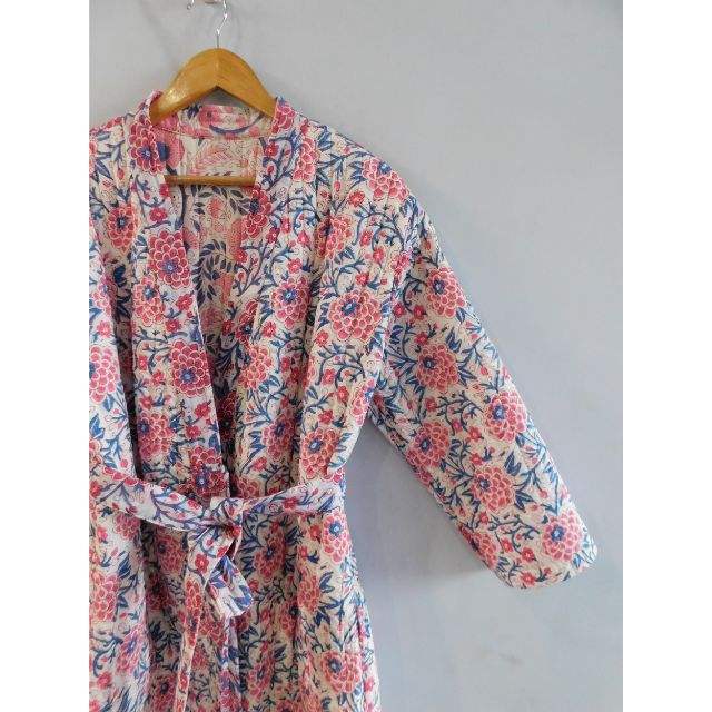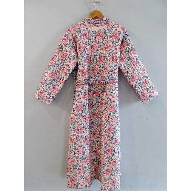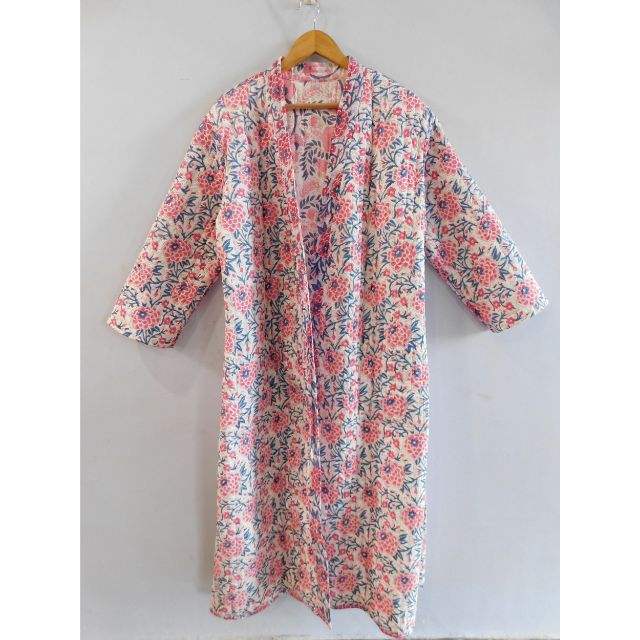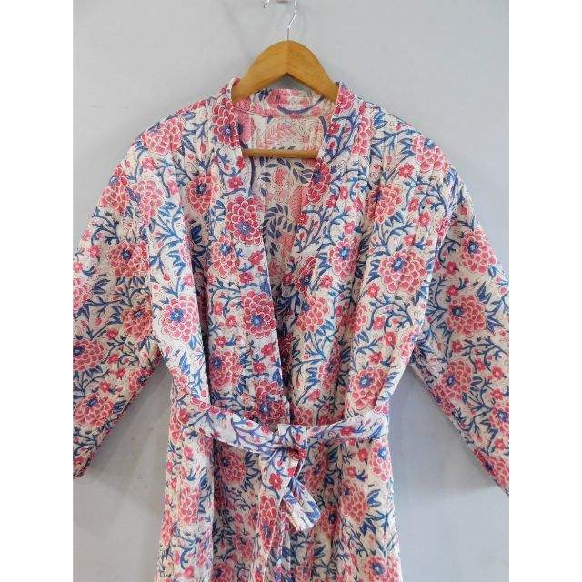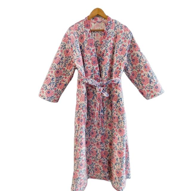 ชุดคลุมอาบน้ำแขนยาวผ้าฝ้ายสีชมพูพิมพ์ลายดอกไม้,ชุดคลุมอาบน้ำกิโมโน Boho และฮิปปี้