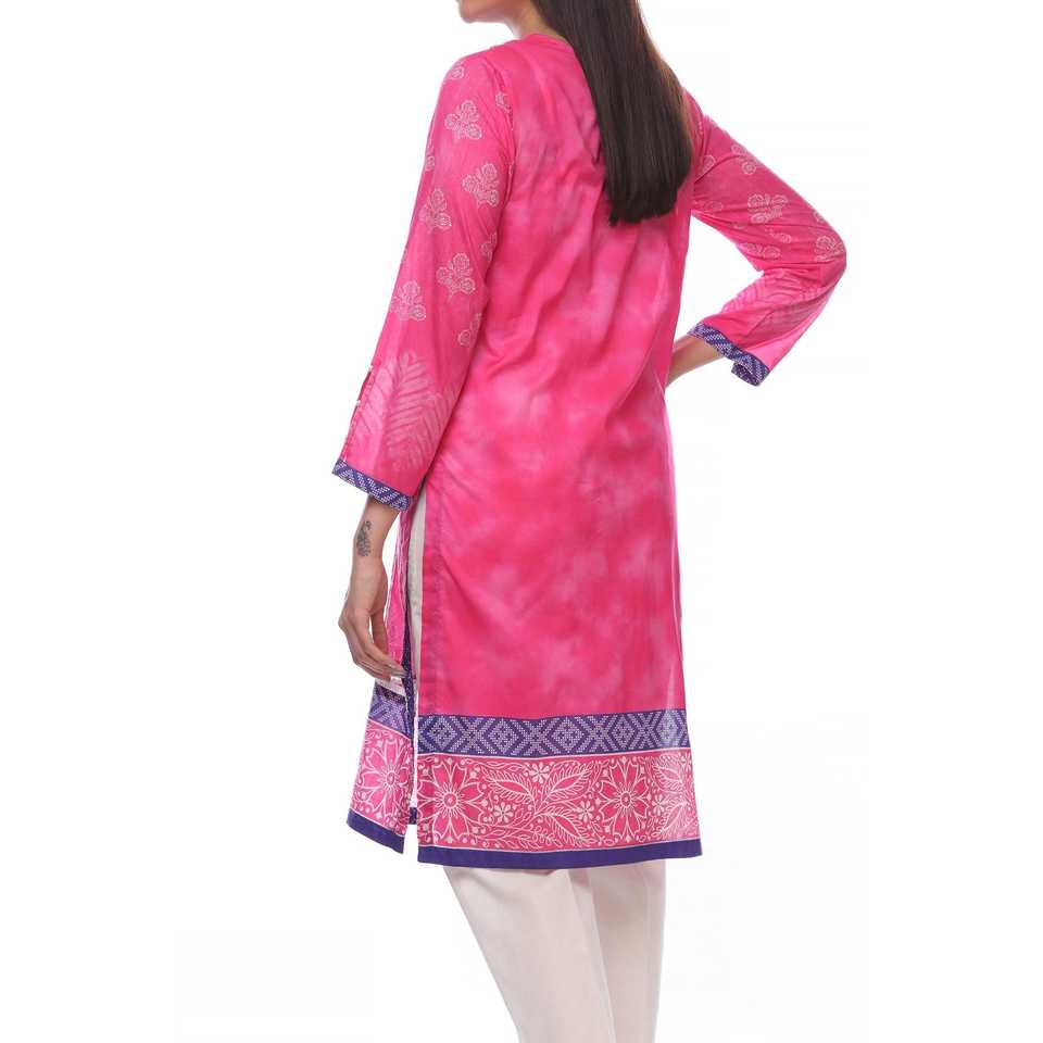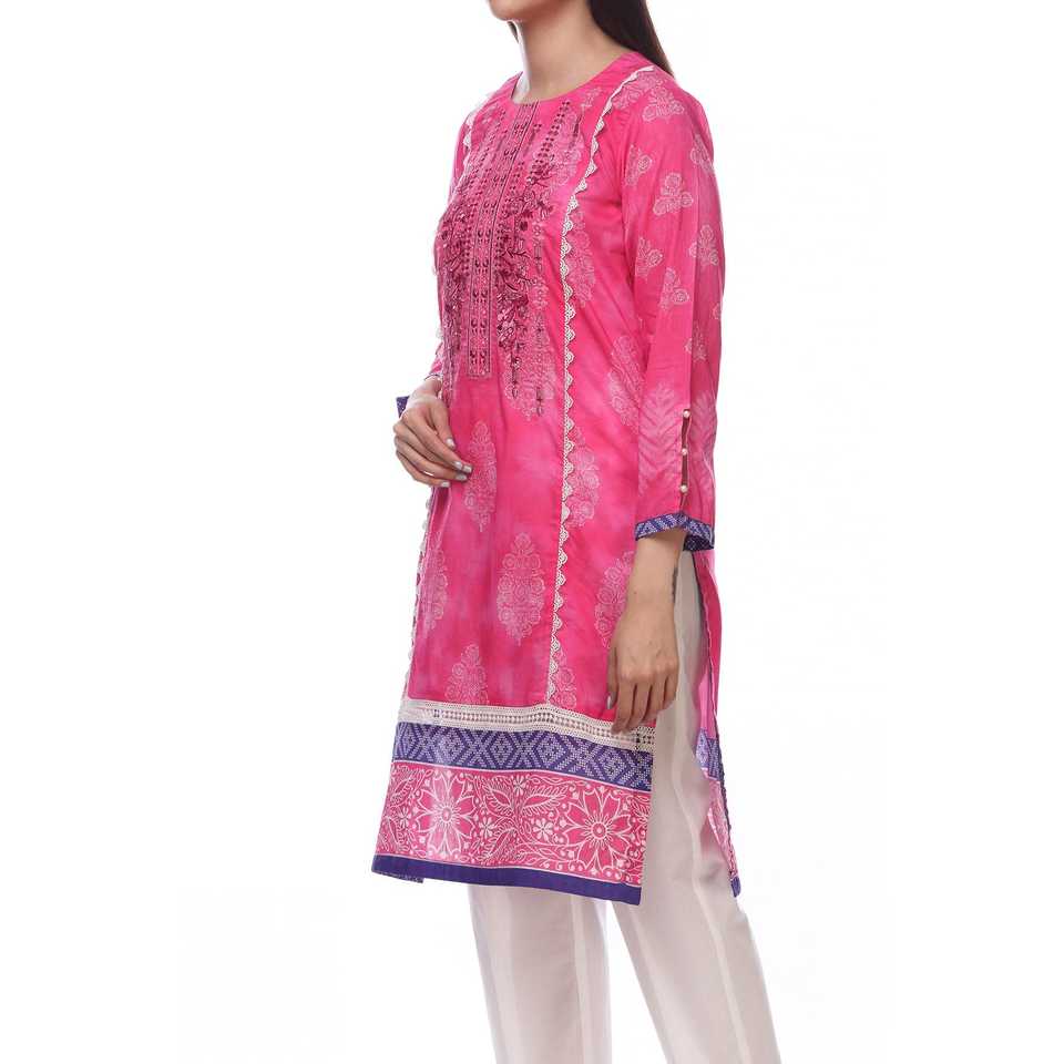 เสื้อยืดผู้หญิงปักลายดิจิทัลสีชมพูคอลเลกชัน PS2348