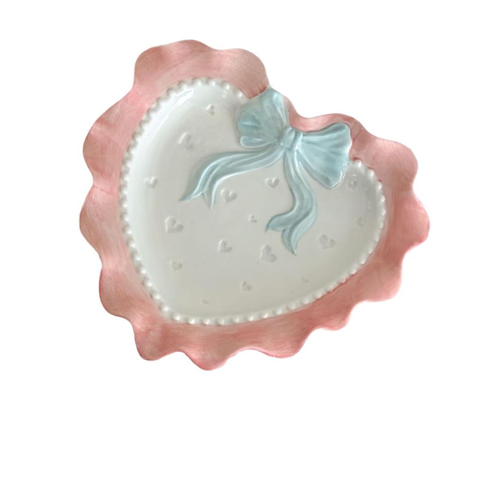 จานบุฟเฟ่ต์งานแต่งงานจานเซรามิกสีชมพูสีชมพูที่ชาร์จอุปกรณ์รับประทานอาหารสำหรับงานแต่งงานงานวันวาเลนไทน์เซรามิกสีชมพูสีฟ้า
