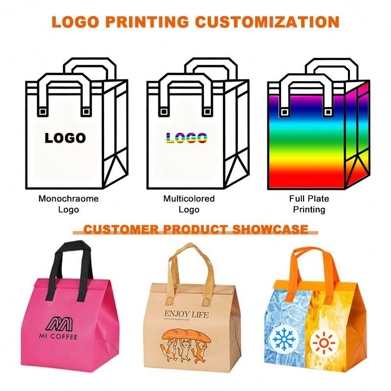 ถุงเก็บความเย็นแบบใช้แล้วทิ้งสีชมพู กันน้ำ ทำจากอลูมิเนียมฟอยล์และผ้าไม่ทอ สำหรับอาหารร้อน-เย็น บริการเดลิเวอรี่และซื้อกลับบ้าน