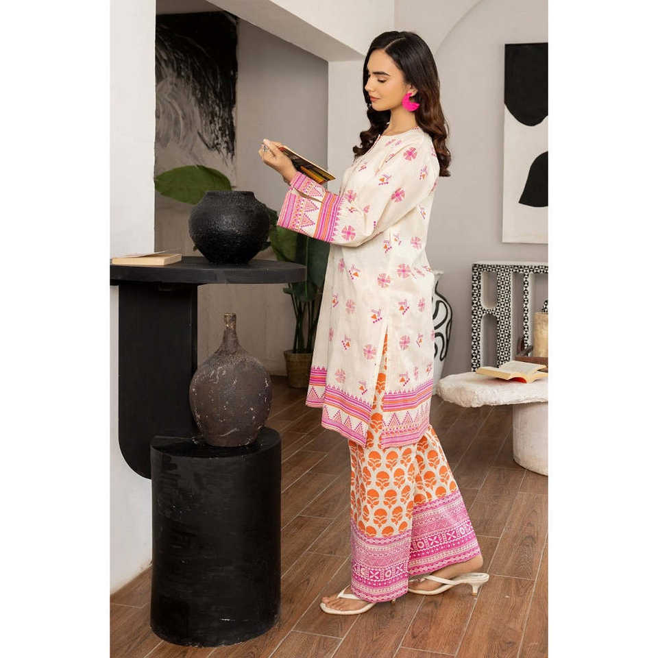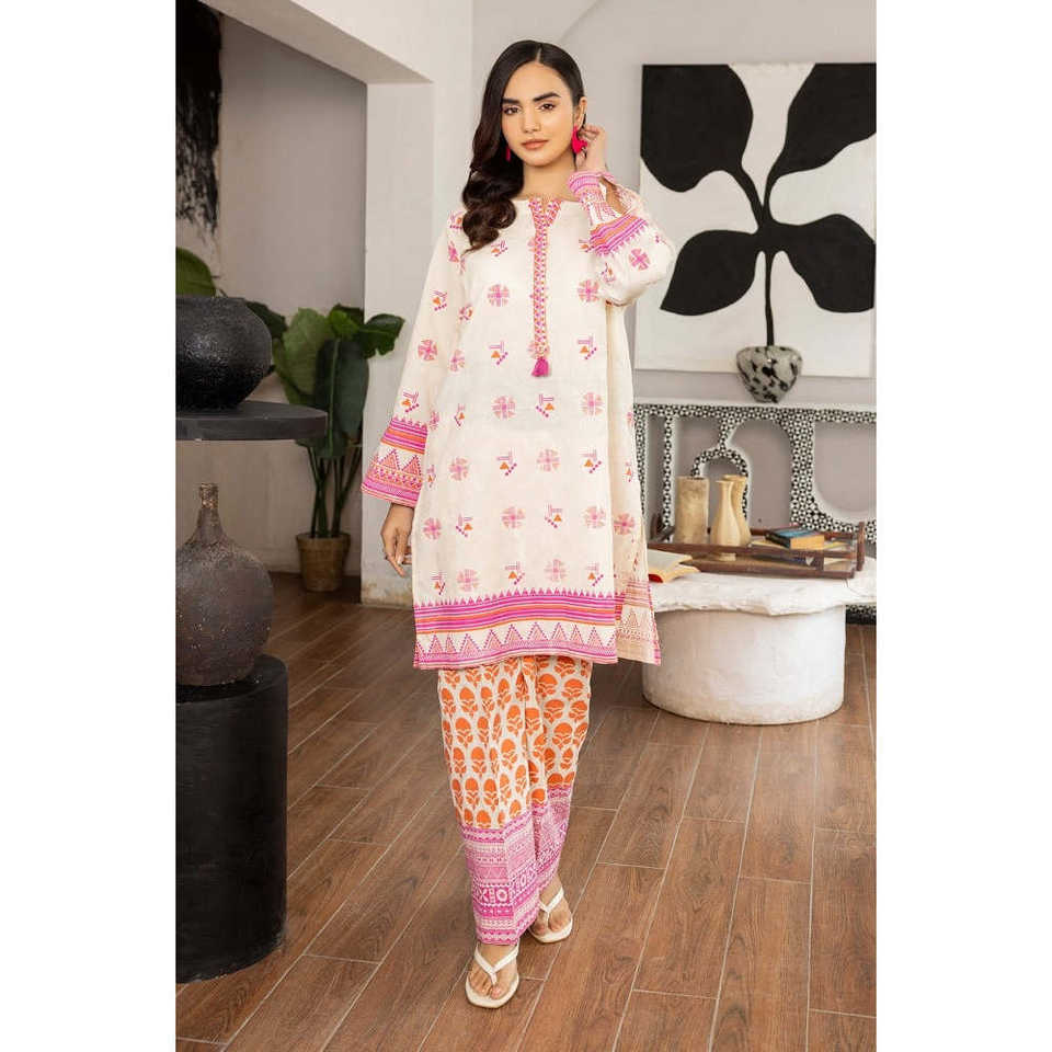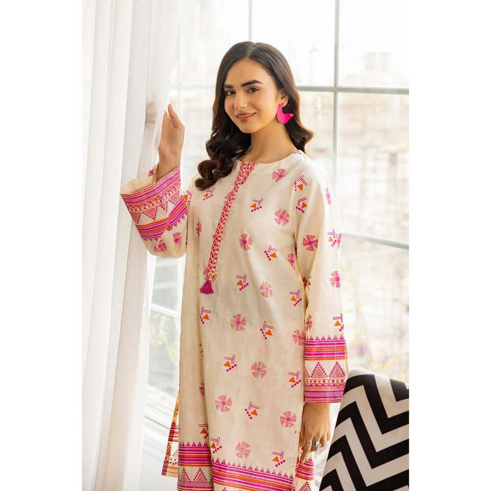 ชุดเซ็ตพิมพ์ลายดอกด็อบบี้สีชมพูสำหรับผู้หญิง ตกแต่งด้วยลายปักขนนก ชุดลำลองสองชิ้น เสื้อท่อนบนยาวเหนือเข่า ไซส์ XS