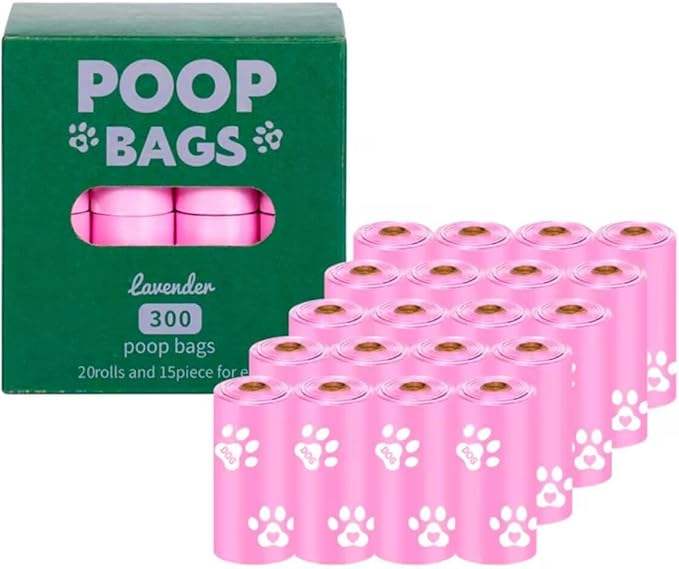 ถุงอึสุนัขสีชมพูกลิ่นลาเวนเดอร์กลิ่นหมาถุงอุจจาระกลิ่นลาเวนเดอร์พร้อมเครื่องจ่ายเพิ่มข้นป้องกันการรั่ว