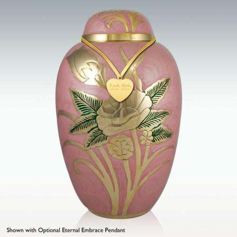 ดอกไม้โดมสีชมพูทองนูนโลหะที่ระลึกทองเหลือง/อลูมิเนียมผู้ใหญ่ศพมนุษย์เผาศพโกศสไตล์อเมริกัน/ยุโรป